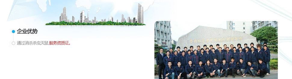 南京清波殺蟲技術服務有限公司是一家專業從事;有害生物防治、蟲害控制管理、衛生防疫消毒、環境綠化工程與養護服務、清潔服務、殺蟲藥品和器械銷售及售后服務。   我們的服務項目:消滅老鼠、蟑螂、蚊子、蒼蠅、白蟻、跳蚤、臭蟲等衛生蟲害的防制工作及環境消毒。特別是在殺滅德國小蠊及老鼠防治方面有著無可比擬的技術優勢。   我們的服務對象:賓館、酒店、超市、商場、商業大樓、餐廳、食品加工廠、醫院、各類廠區、集裝箱、船泊、鐵路車廂、娛樂場所、學校、銀行、航空及公共外環境等病媒蟲害綜合防制業務。   我們的優勢:   1、專業:我公司擁有一支設備先進及專業的技術人員組成的消殺隊伍。具有豐富的理論知...